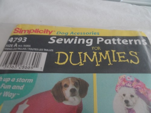 Sewing Patterns For Dummies 4793 Dog Accessories All Sizes Uncut 39363286691 Ebay